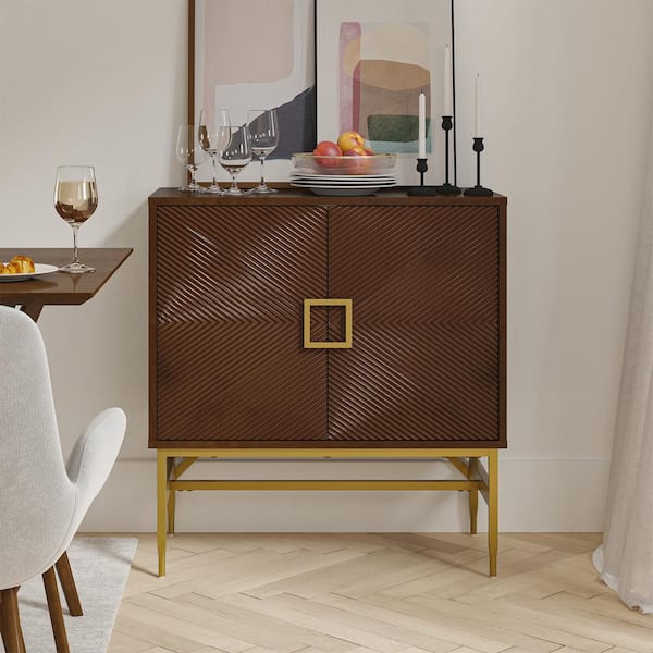 Zacharias Walnut 34 in. Tall 2 - Door Modern Accent Cabinet with Square Iron Handle