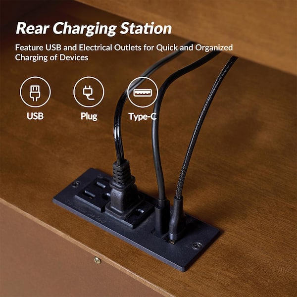 Zaida Acorn 24 in. W Mid-century Modern 3-Drawer Nightstand with Built-In Outlets (Set of 2)