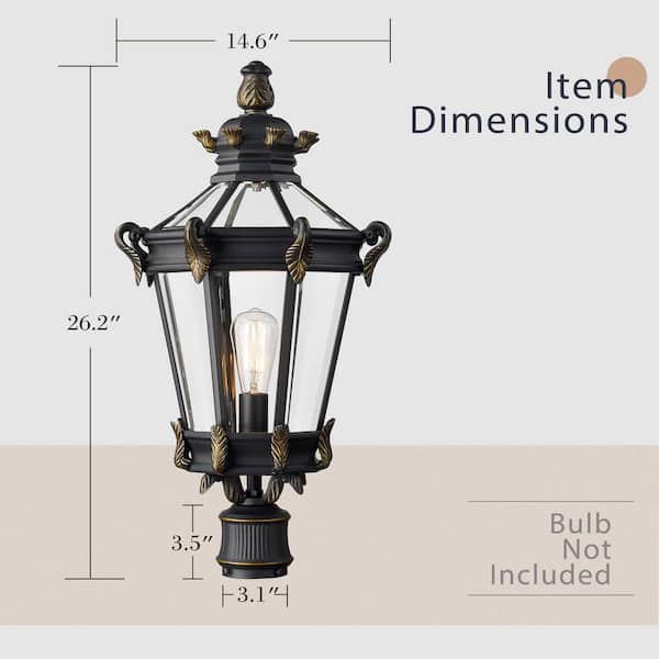 1-Light Black Aluminum Hardwired Outdoor Weather Resistant Post Light Set with No Bulbs included