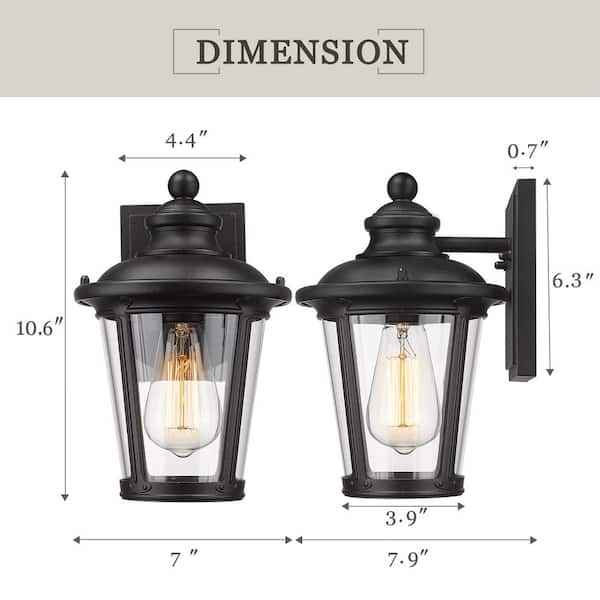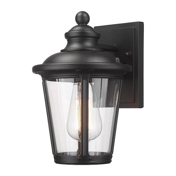 1-Light Black Aluminum Outdoor Hardwired Waterproof Outdoor Lighting Fixture Wall Lantern Sconce with No Bulbs Included