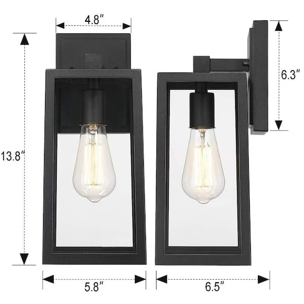 1-Light Black With Clear Glass Not Solar Hardwired Outdoor Wall Lantern Sconce