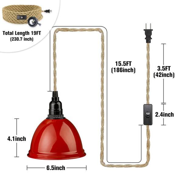 1-Light Pulg in Red Dome Pendant Light with Metal Shade
