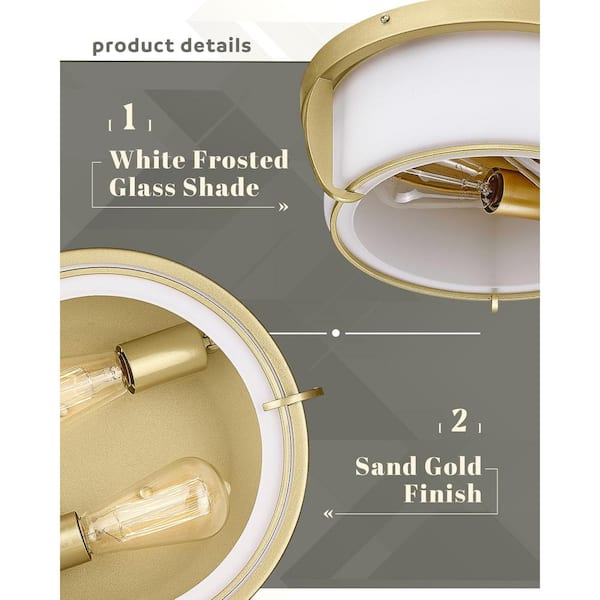 12.6 in 1-Light Brushed Gold Modern Flush Mount with Glass Shade and No Bulbs Included