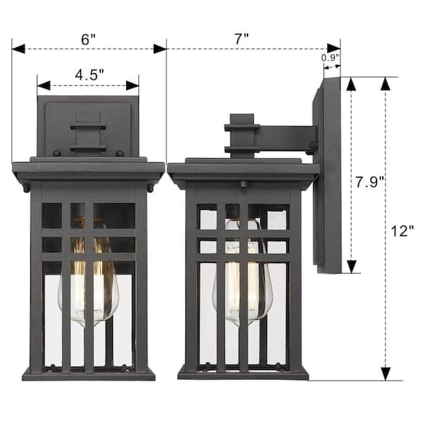 12 in. 1-Light Black With Clear Glass Hardwired Outdoor Wall Lantern Sconce Light (1-Pack)