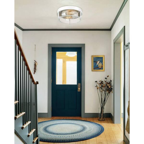12 in. 2-Light White With Seeded Glass Shade Ceiling Flush Mount Light