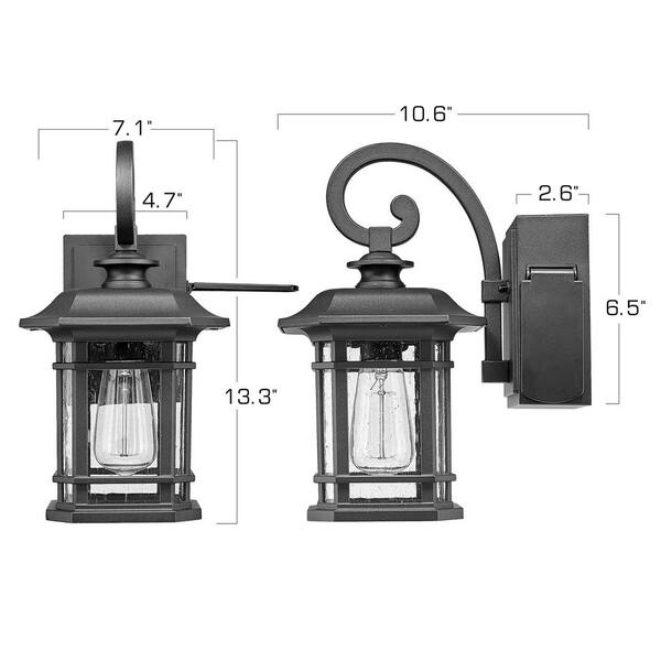 13.3 in. Black Outdoor Hardwired Wall Lantern Sconce with No Bulbs Included