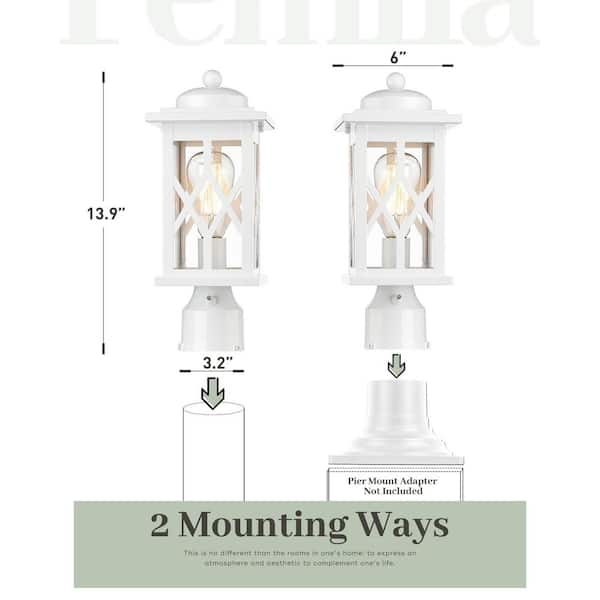 13.9 in. 1-Light White Aluminum Dusk to Dawn Hardwired Outdoor Rust Resistant Pier Mount Light with No Bulbs Included