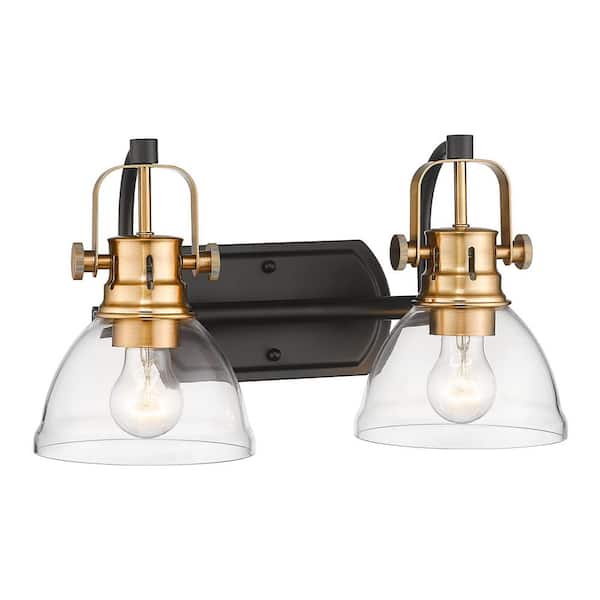 15.8 in. Indoor 2-Light Black and Gold Bedroom Powder Room Hallway Vanity Light Wall Sconce Light