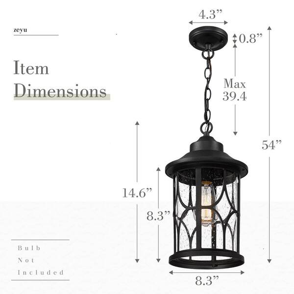 15 in. 1-light Black Finish Outdoor Pendant Light with Seeded Glass and No Bulbs Included