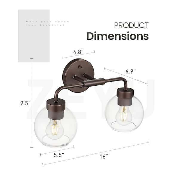 16 in. 2 Light Oil Rubbed Bronze Vanity Light with Clear Glass Shade