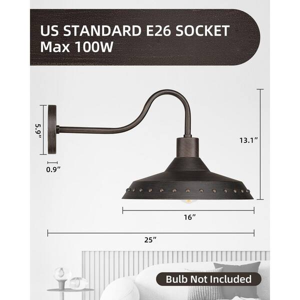 16 in. Oxidized Rust Finish Outdoor Hardwired Wall Sconce Barn with No Bulbs Included (2-Pack)