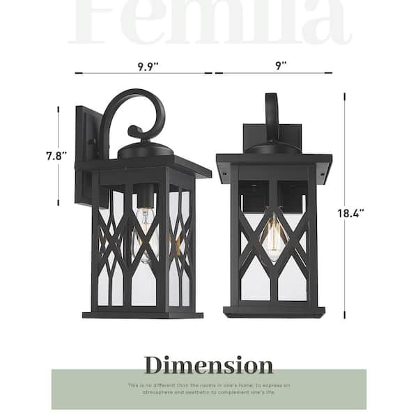 18.4 in. Black Outdoor Hardwired Wall Lantern Sconce with Clear Glass Shade and No Bulbs Included