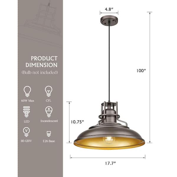 18 in. 1-Light Oil Rubbed Bronze Outdoor Pendant Lights with No Bulbs Included