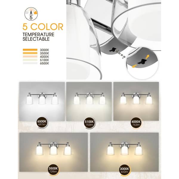 20.5 in. 3-Light 15W Chrome LED Vanity Light with Clear Frosted Glass Shade