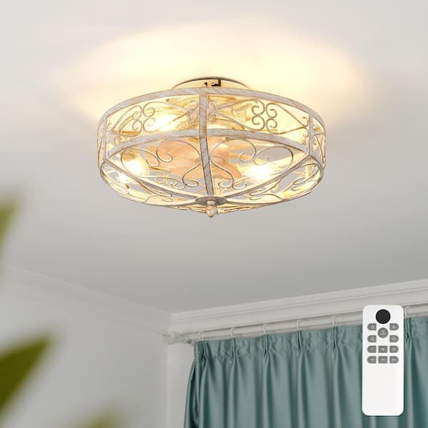 20 in. Indoor White and Golden 100-240-Volt Low Profile Cage Ceiling Fan with Light