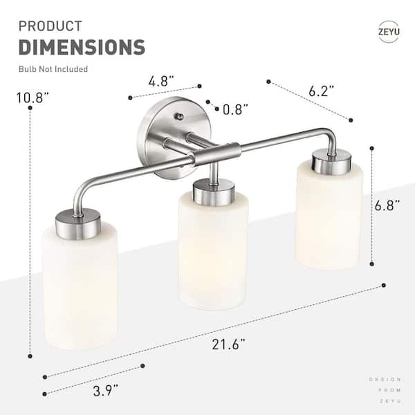 21.6 in. 3 Light Brushed Nickel Vanity Light with Clear Glass Shade