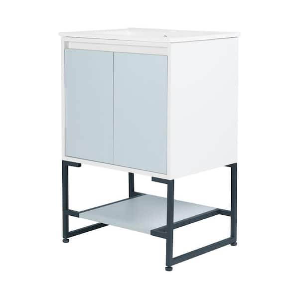 23.62 in. W x 19.49 in. D x 34.57 in. H Floating Bath Vanity in Ash Gray and White Foil with White Ceramic Top