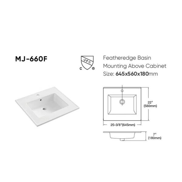 24 in W x 18 in. D x 23 in. H Floating Bath Vanity in Black Walnut with White Ceramic Top