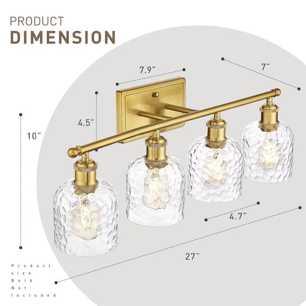 27 in. 4-Light Brushed Gold Vanity Light with Hammered Glass Shade