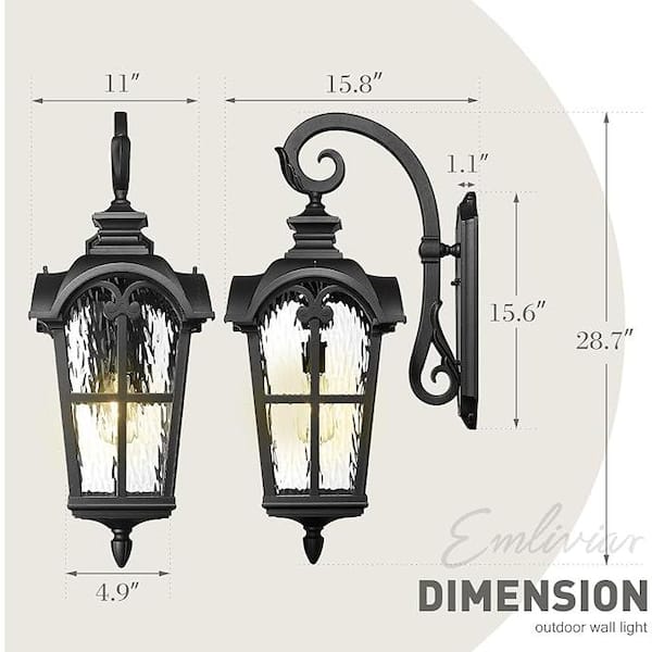 29 in. Large Exterior Black Weather Resistant Outdoor Hardwired Wall Lantern Sconce with No Bulbs Included