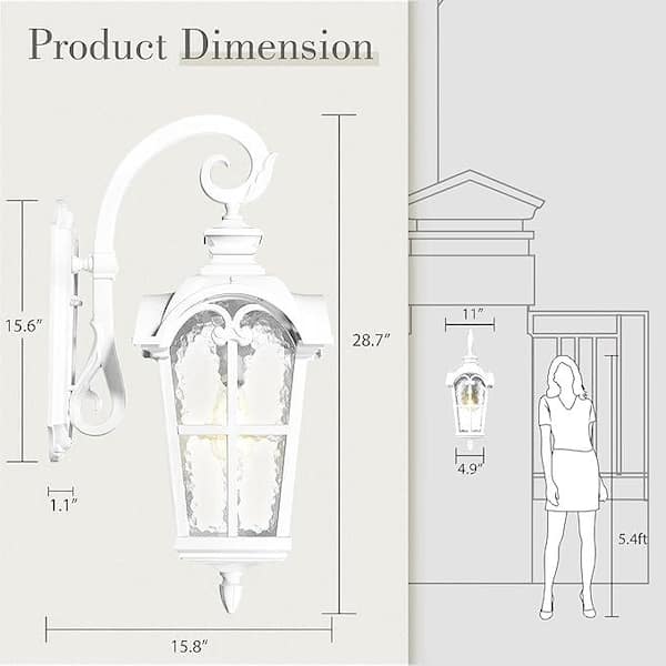 29 in. Large Exterior White Weather Resistant Outdoor Hardwired Wall Lantern Sconce with No Bulbs Included
