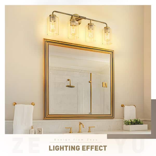 30 in. 4 Light Brushed Gold Vanity Light with Clear Glass Shade