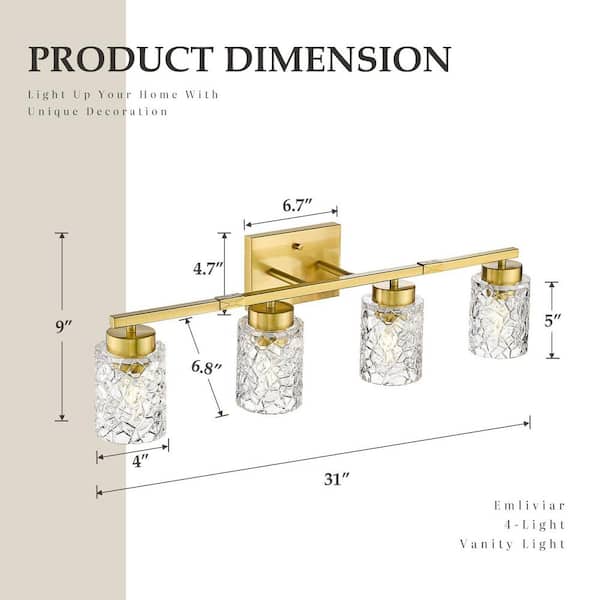 31 in. 4-Light Brushed Gold Vanity Light with Clear Glass Geometric Shade Light Fixture