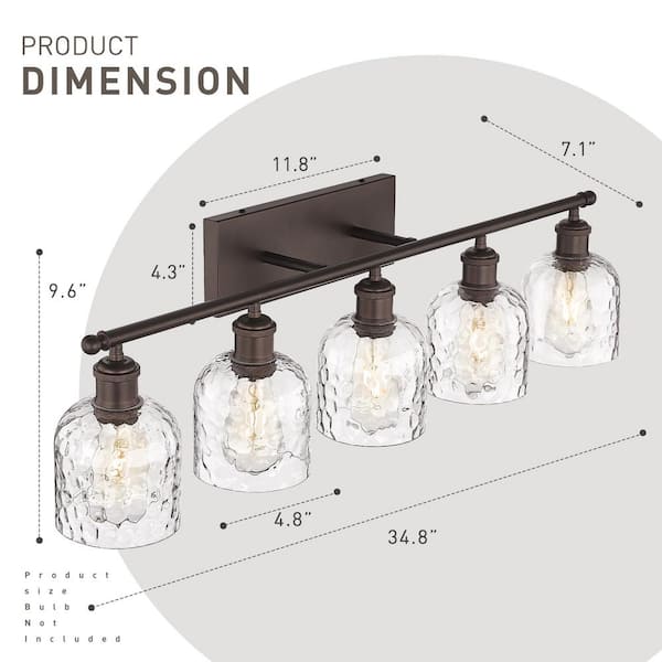 34.8 in. 5-Light Oil Rubbed Bronze Vanity Light with Hammered Glass Shade