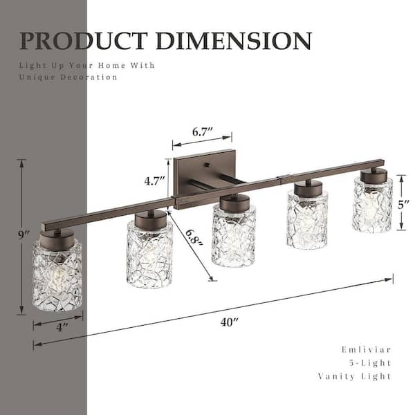40 in. 5-Light Oil-Rubbed Bronze Vanity Light with Clear Glass Geometric Shade Light Fixture