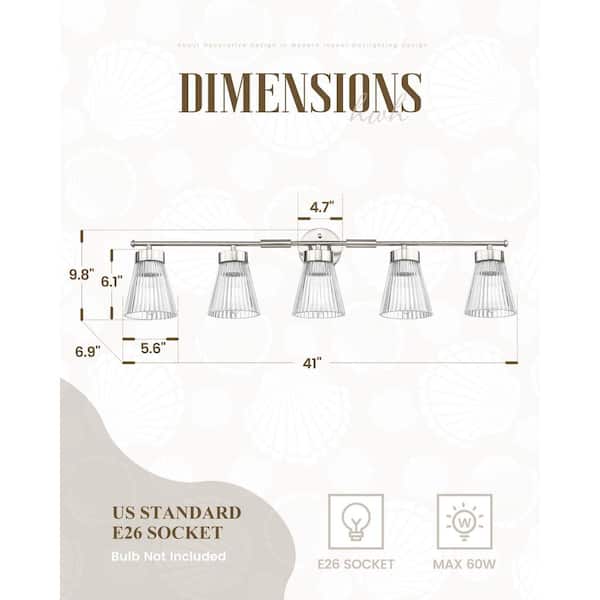 41 in. 5 Light Brushed Nickel Vanity Light with Glass Shade
