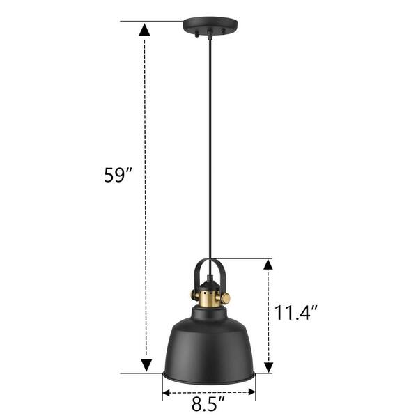 60-Watt 1-Light Matte Black Pendant Light with Metal Shade, No Bulbs Included