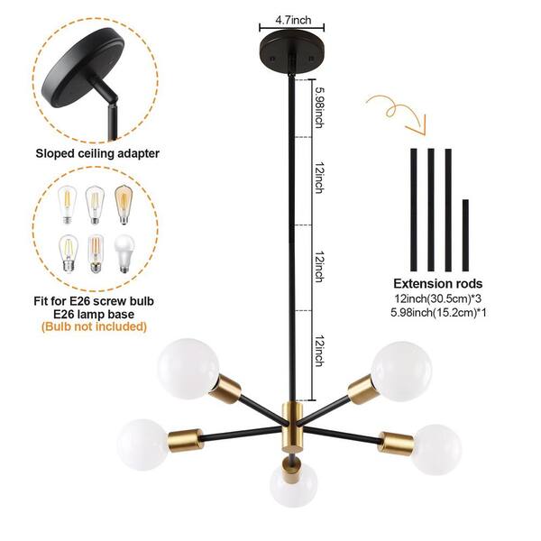 60-Watt 5-Light Gold Pendant Light, No Bulbs Included