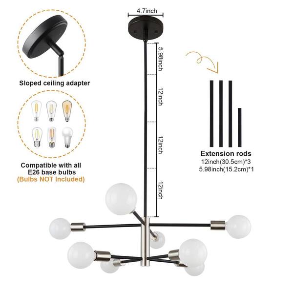 60-Watt 8-Light Silver Pendant Light, No Bulbs Included