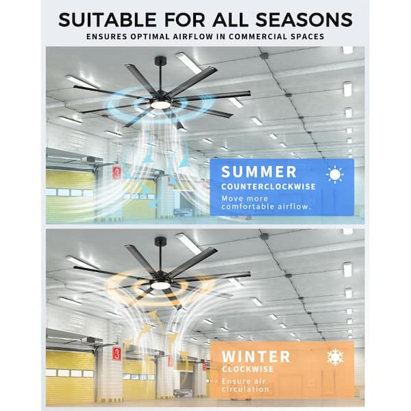 84 in.Indoor Aluminum Black 100-240 V 82 RPM Industrial Ceiling Fan with Integrated LED