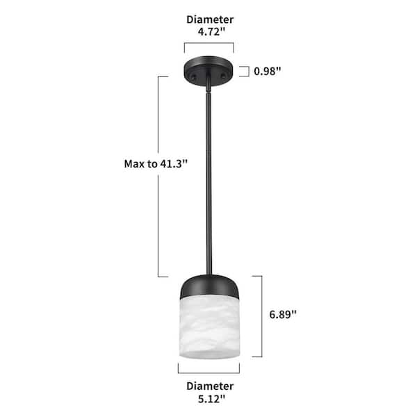 Alabaster Series 60-Watt 1 Light Black Mini Pendant Light with Cylinder Marble Shade, No Bulbs Included 2 PK