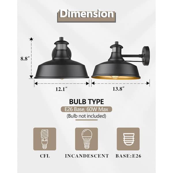 Black Motion Sensing Dusk to Dawn Outdoor Hardwired Barn Wall Lantern Scone with No Bulbs Included