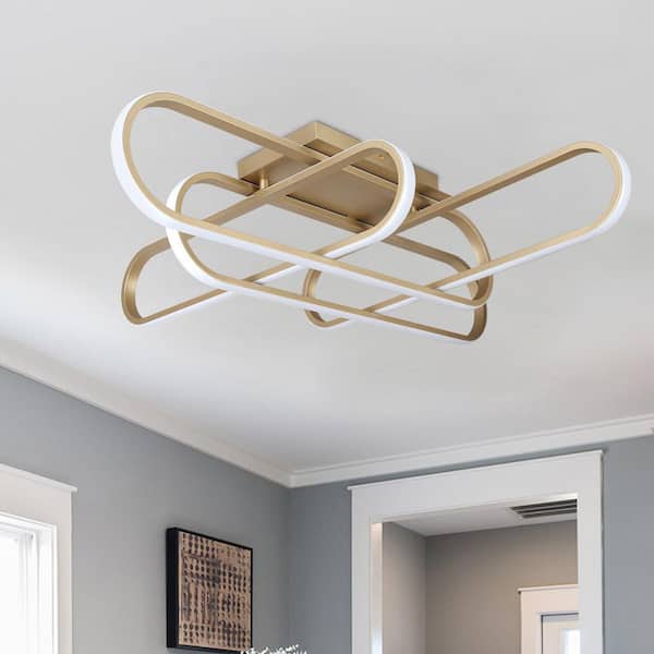 31 in. 40-Watt Flush Mount Gold Modern LED Dimmable Ceiling Light Fixture
