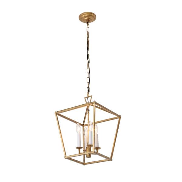 4-Light Antique Bronze Metal Caged Chandelier