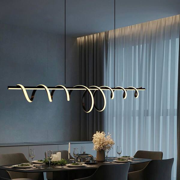 Modern 42-Watt 1 Light Fixture Black Creative Spiral Design Chandelier Led integrated dimmable Linear Pendant Light