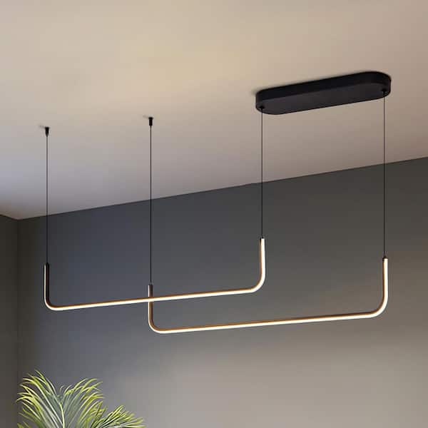 Sleek 40-Watt 2-Light Black Modern Linear with Curve Ends Design Integrated LED Mini Pendant Light