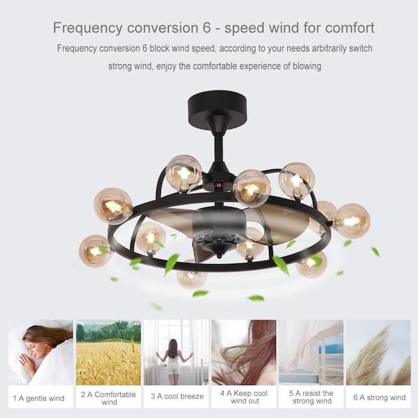 Standard 35 in. Indoor Black Downrod Mounting Smart Simple Retro Ceiling Fan with Light Kit with Remote Control