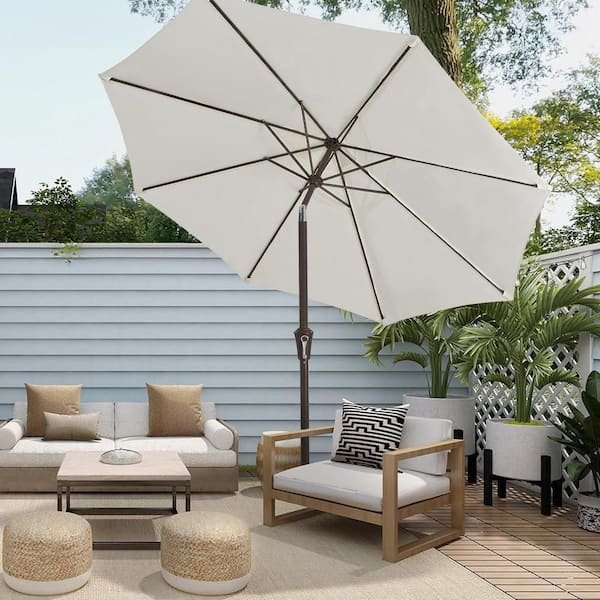 10 ft. Market Patio Umbrella with Push Button Tilt and Crank in Off-White