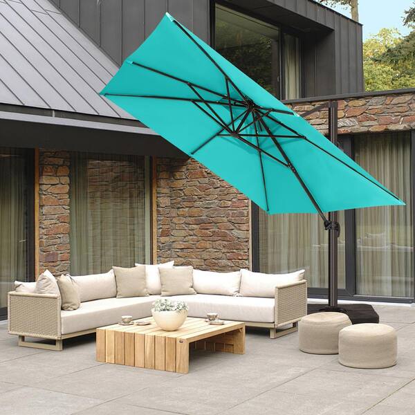 10 ft. x 10 ft. Square Cantilever Patio Umbrella with Weighted Base in Peacock Blue