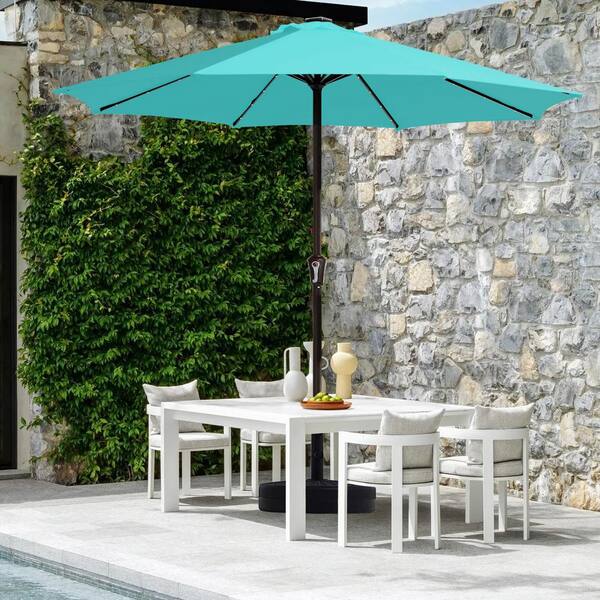 11 ft. Market Solar LED Lighted Patio Umbrella Outdoor Steel Umbrella in Peacock