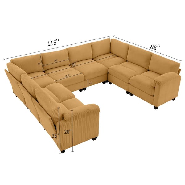 115 in. Corduroy Modular U-Shaped Yellow 8-Seat Sectional Sofa for Living Room and Spacious Space
