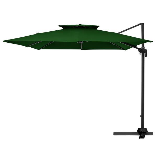 12 ft. x 12 ft. Aluminum Cantilever Patio Umbrella with Weighted Base in Dark Green