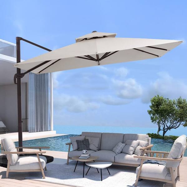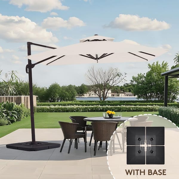 12 ft. x 12 ft. Aluminum Cantilever Patio Umbrella with Weighted Base in Off-White