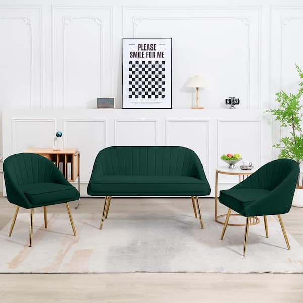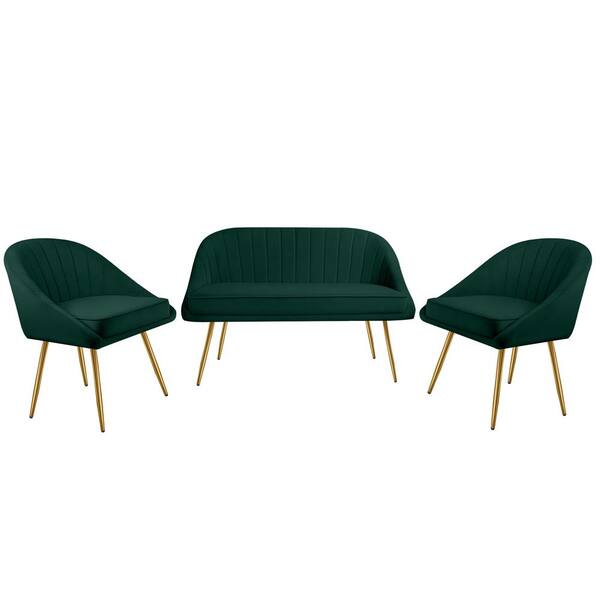 3-Piece Living Room Set with Brushed Velvet in Dark Green