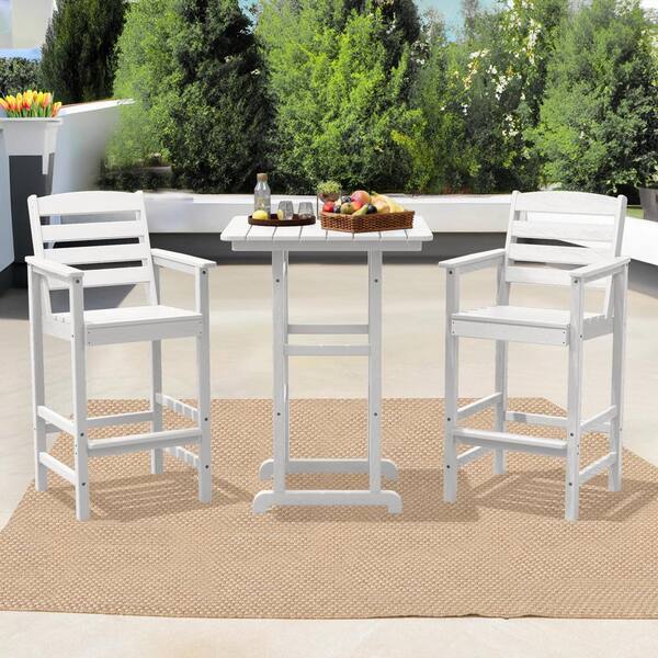 3-Pieces HDPE Plastic Square 46 in. Outdoor Bar Set in White