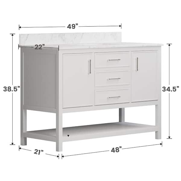 48 in. W X 22 in. D X 34.5 in. Single Basin Vanity in White with White Marble Top